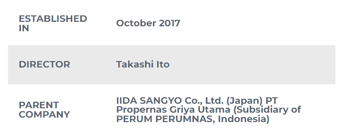 Between IIDA SANGYO Co., Ltd. and PT Propernas Griya Utama, the main subsidiary of PERUM PERUMNAS.